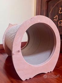Tiragraffi / grattatoio con rivestimento esterno in sisal naturale, con ampia superficie per graffiare. Struttura in legno robusto con aperture sagomate a forma di testa di gatto. In perfetto stato.