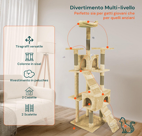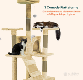 Struttura XXL Robusta e Spaziosa: Altezza di 170cm con doppia cuccia, ideale per gatti adulti. Offre ampio spazio per giocare, arrampicarsi e riposare, soddisfacendo l'istinto naturale di graffiare.