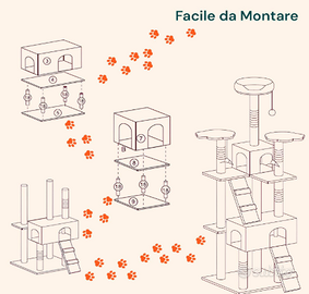 Sicurezza e Facilità di Montaggio: Progettato pensando alla sicurezza dei tuoi gatti, con una base stabile per prevenire ribaltamenti. Facile da montare, permette una rapida installazione in qualsiasi angolo della casa.