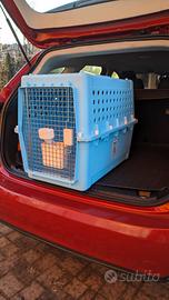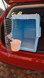 come da titolo, vendo trasportino per aereo, le misure sono cm. 52x36x64, io l'ho usato per spedire un gatto adulto ( va bene anche per un piccolo cane) da Sidney (Australia) a Milano Malpensa, con la compagnia AM Pet Movers e il trasportino si è rivelato eccezzionale, è particolarmente indicato per i viaggi aerei: soddisfa tutti i requisiti del trasporto aereo internazionale ed è conforme a IATA, inoltre comprende tutti i componenti necessari. Purtroppo non posso spedire ed è necessario il ritiro al mio domicilio (abito in provincia di Milano), il prezzo di vendita è di 60 euro