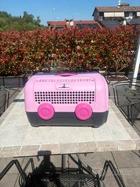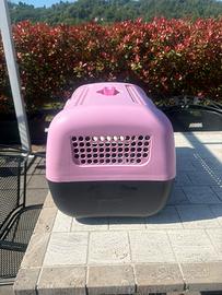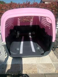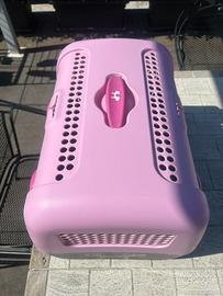 Trasportino rigido per animali di piccola taglia in propilene dotato di porta in alluminio e chiusura di sicurezza. Marca United Pets. Misure 37 x 51 x 33 Colore rosa e grigio. Ritiro in loco.
