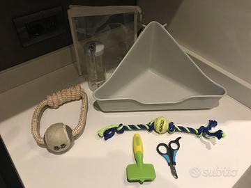 Regalo set accessori mai usati ( Spazzola, Forbicine, 2 giochi con fune, Ciottola Acqua ).