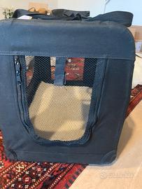 lionto Borsa trasportino per cani pieghevole per viaggi e auto, 60×42×44 cm, box di trasporto stabile con maniglie per gatti e animali fino a 12 kg, in tessuto, nero