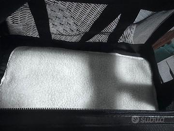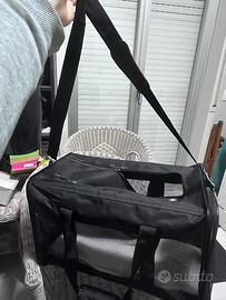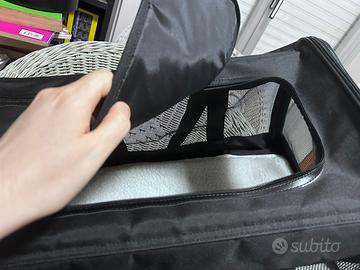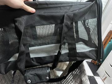 Misure: 51 cm L x 31 cm W x 31 cm H Borsa grande per il trasporto di animali domestici fino al peso di 10 kg Le pareti a rete garantiscono la massima ventilazione; chiusura a zip superior e frontale Maniglie per il trasporto e tracolla Adatto alle dimensioni dei sotto-sedile della maggior parte delle compagnie aeree Tappeto interno lavabile in lavatrice Usato solo una volta Prezzo leggermente trattabile