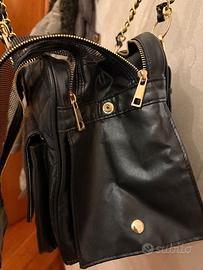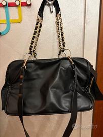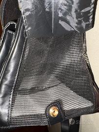 Trasportino similpelle nero. Misure 40cm x 26cm profondità 20 cm. Tappetino interno in pelo finto e cintura di sicurezza. Tasca esterna come da foto. Usato pochissimo.