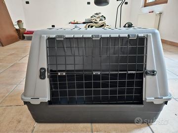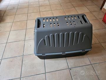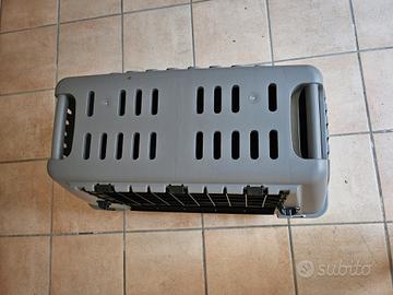 trasportino per cane. usato poche volte. come nuovo. con portina metallica e parte superiore removibile. grigio e nero. L77xP43, h 53cm. !!!RITIRO DI PERSONA!!!