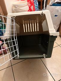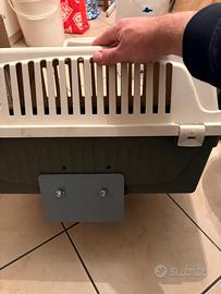 Trasportino cane e gatto Ferplast con piastra artigianale per agganciarlo saldamente sul portapacchi della bici. Portara max 15 kg. Cm 40x60x38. Usato solo 3 volte.