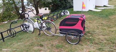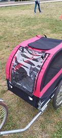 vendo trasportino come nuovo , usato solo 20 volte. completo di gancio attacco per bici e bandierina arancione per migliore visibilità. è completa di tendalino in caso di pioggia