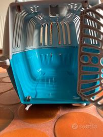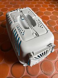 Trasportino robusto con una apertura sul fronte tutto in plastica si può dividere in due parti ha una comoda maniglia e due ganci per la tracolla