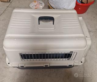 Vendo per inutilizzo trasportino cane media taglia pari a nuovo. Usato pochissimo. Lungo 65 cm alto 48 cm. con ciotolina d'acqua inclusa.