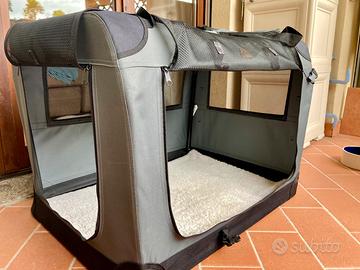 Comprato poche mese fa. Quasi nuovo. Molto bello da vedere. Era comodissima (anche grande) per mio Lagotto Romagnolo di 20kili. Trasportino per cane Medio-Grande 82×60×60cm Pieghevole