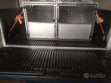Vendo come da titolo trasportino cane di grandi dimensioni , diviso in 2 spazi uno piu grande e uno un po più piccolo (contiene dai 4 ai 5 cani a seconda della taglia) . Ideale per monovolumi furgoni e pick up . Costruito in alluminio e acciaio zincato .