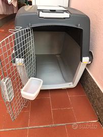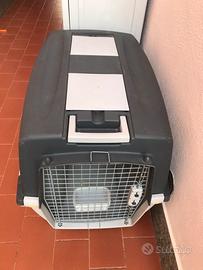 Trasportino/cuccia per cane taglia medio-grande. Smontabile sperando il fondo che può essere usato come cuccia interna. Molto robusto e comodo per viaggiare. Come da foto, usato ma in buone condizioni e conservazione. Ritiro in loco a carico di interessato, non conveniente la spesizone causa spese elevate per l’ingombro. Provincia di Roma.