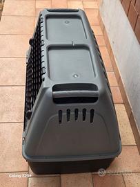 Trasportino cane taglia medio grande, dimensioni L88xP51xH58, apertura verso l'alto per facilitare l'ingresso del cane.