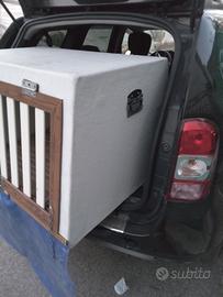 Trasportino per cani da caccia in vetroresina con doppio fondo in legno, completamente costruito a mano per adattarsi alla DACIA DASTER