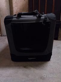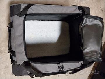 Presenta un'apertura a cerniera frontale e superiore.