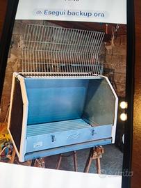 usato poche volte per cambio auto, in acciaio e plastica con fondo estraibile, misura lunghezza cm 90 , profondità cm 65 altezza cm 68,parte sopra 90x35 cm obliquo 38 cm, davanti 48 cm apertura ampia come da foto.