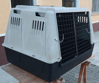 Trasportino molto capiente in grado di trasportare 4 cani taglia media, corredato di parete divisoria che ho rinforzato rendendola antisfondamento così che anche cani irrequieti possono essere trasportati, dimensioni 100x80xh71, se interessati 3313700779, date le dimensioni non posso spedire.