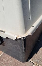 Trasportino con solo un angolo rovinato (rosicchiato come da foto), marca Ferplast 100x66x60 per cane medio/grande, ma complessivamente in buono stato. Vendo in blocco, in buono stato, anche pettorina Julius K9 con guinzaglio, brandina in alluminio, contenitore per crocchette e ciotole.