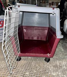 Trasportino con ruote per cani di taglia media Ferplast Atlas 40 a cui è stato aggiunto il kit ruote.In resina termoplastica per cani di taglia media (fino a 20 Kg) o gatti di taglia grande.