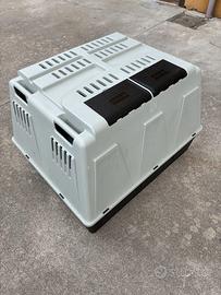 Trasportino FERPLAST - Atlas Car Maxi in ottime condizioni. Porta con griglia bidirezionale scorrevole e solida chiusura di sicurezza. Doppio vano portaoggetti sul tettuccio. Tappetini igienici removibili in plastica. Dimensioni: 100 x 80 x 71(h) cm