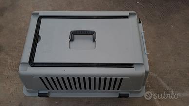 Trasportino in resina termoplastica per cane taglia media della FERPLAST ( per auto, treno, nave).