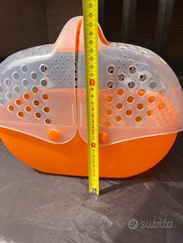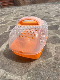 Ideale come trasportino o per utilizzo temporaneo. Struttura in plastica resistente con fori per una buona aerazione. Lunghezza circa 30 cm, altezza 28 Condizioni buone, usata ma ancora perfettamente funzionale e pulita.