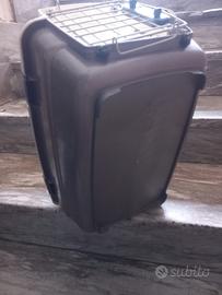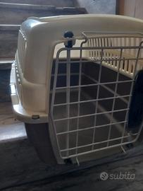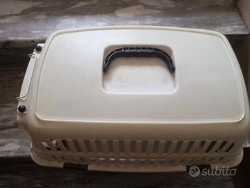 Trasportino per gatti cani di piccola taglia colore beige e grigio, ideale per viaggi. Usato in buone condizioni - Struttura in plastica resistente. - Manico superiore per un facile trasporto. - Griglie laterali per una buona ventilazione. 47lunghezzax31 larghezza x30 altezza