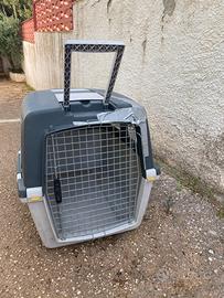 Trasportino per aereo e auto Gulliver 6 Plus con 6 griglie delle finestre laterali in metallo della Stefanplast Misure 92x64. H 66 Conforme alle norme IATA x aerei. In buona condizione Con una spaccatura riparata come si vede dalla foto Trattabili