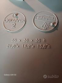 Vendo trasportino cani / gatti 8 Kg modello GULLIVER 2 nuovo, ideale per viaggi in auto, treno ed aereo. Vari porta oggetti, chiusura di sicurezza, fessura per cintura di sicurezza. Prezzo di listino € 40. Misure come da foto. Non effettuo spedizione, solo consegna a mano.