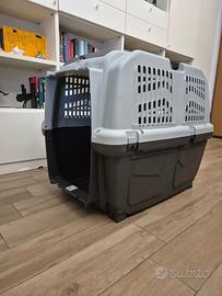 Trasportino Skudo Iata - conforme agli standard (Skudo 5 - 79x58.5x65(h)cm), ideale per trasporto in viaggio, ma anche come cuccia. Materiale: plastica dura e metallo. Nuovo, mai usato. Pulito e igenizzato. Vendo perché troppo grande per il mio cane. Imballo accurato in scatola di cartone originale del negozio di animali. Istruzioni presenti nel pacco. Pacchetto con chiusure laterali mai aperto. Sono disponibile a consegna di persona per acquisto a Genova.