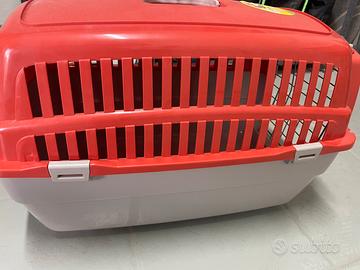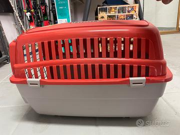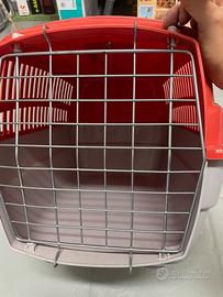 Trasportino per animali fino a 12 chili Con porticina anteriore metallica e chiusira di sicurezza per ingresso frontale ma dotato amche di apertura superiore con accesso dall’alto. Il prodotto é nuovo, mai utilizzato Comodo al ritiro piano strada in caso di necessità posso portare in sito