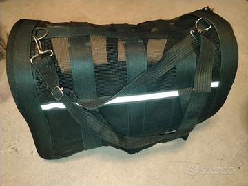 Trasportino per tutti i tipi di animali, io lo usavo per il mio coniglio , ma va bene per qualsiasi animale di piccola taglia, nero con due manici e la possibilità della tracolla, con strisce retroriflettenti ai lati, cerniera laterale con piccola tasca, tenuto in buono stato.
