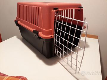Trasportino in plastica rigida e resistente, facilmente lavabile ed igienizzabile, con aperture laterali per facilitare areazione, sportello in acciaio per introdurre l'animale. Le misure sono :larghezza cm 31, altezza cm 30, lunghezza cm.48, perchè un pò bombato.