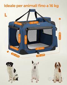 Trasportino pieghevole per auto e casa per cani di taglia media. Dimensioni 70x52x52 da aperto, 70x52x8 da ripiegato. Colore blu condizioni pari al nuovo, 3 mesi di vita. Usato 2 volte.