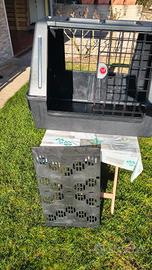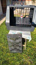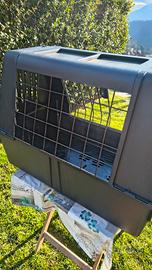 Trasportino usato una sola volta e praticamente nuovo, senza segni. Pianale rimovibile rialzato dal fondo per inserire eventuali traversine o altro. Leggero, ha le maniglie laterali per il trasporto. Smontabile. Misure esterne: 82 cm lunghezza 62 cm altezza 51 cm profondità Misure interne: 74 cm lunghezza 57 cm altezza 44 cm profondità