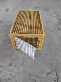 Cedo per inutilizzo trasportino gabbia per animali da cortile, anatre, oche, polli, conigli, faraone, fagiani, lepri, gatti, cani, ecc. Misure: lunghezza 97 cm, larghezza 58 cm, altezza 43 cm. Con due sportelli fronte retro posizionati sui lati corti con misure: larghezza 38 cm, altezza 31 cm