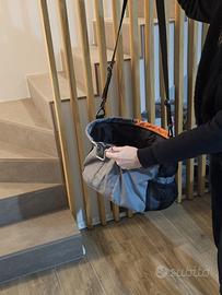 Vendo trasportino per bici con tracolla per cane o gatto (3/4 kg). Ha gancio che si attacca al manubrio