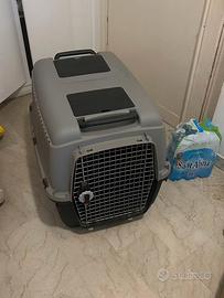 Comprato da Arcaplanet, trasportino mai usato, sempre tenuto in casa. Ruote nuove ancora imballate, mai montate. Condizioni pari al nuovo. lunghezza 81cm larghezza 60cm altezza 61.5cm