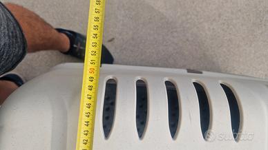 vendo come da foto trasportino per cane misure come in foto adatto a cani di grossa taglia vendo per inutilizzo il kennel è nuovo utilizzato pochissimo volte per trasportare il cane in sicurezza dal veterinario . astenersi perditempo ed affaristi pagato 180€