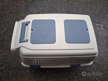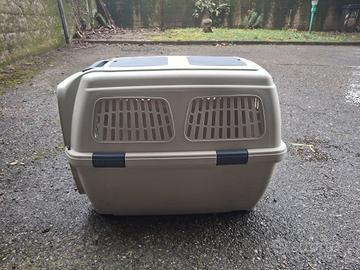 Trasportino per cani media taglia. Rigido. Omologato. 78 cm lunghezza, 48 cm larghezza, 60 cm altezza. 40 euro.