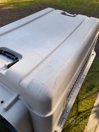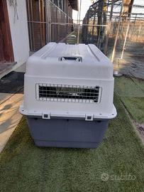 Vendo per inutilizzo trasportino per cani, usato solo due volte. Purtroppo è stato lasciato in un magazzino per 2 anni e presenta qualche graffio esterno, ma è perfettamente integro e funzionale. Ha anche le ruote. Adatto anche per il trasporto di cani durante i viaggi aerei in stiva.