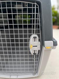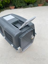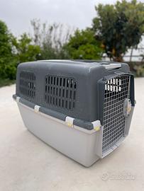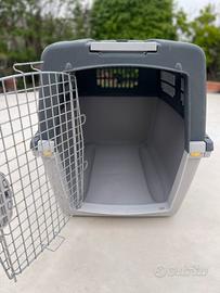 Trasportino Gulliver Trixie per cani di taglia grande, usato pochissimo e in condizioni pari al nuovo. Acquistato per il mio Labrador, vendo per inutilizzo. Colore grigio, dimensioni: 104 x 73 x 75 cm. Ideale per il trasporto in auto, treno e aereo, omologato secondo normativa IATA. Struttura solida e sicura, dotata di chiusure a clip robuste perfette anche per viaggi lunghi. Caratteristiche: •Porticina apribile o completamente removibile •Finestre con griglia e rinforzi aggiuntivi (misure 5, 6 e 7) •Due pratici scomparti porta oggetti/snack •Maniglia per il trasporto Comodo, resistente e già pronto all’uso. Perfetto per chi cerca un trasportino affidabile senza spendere come per il nuovo.
