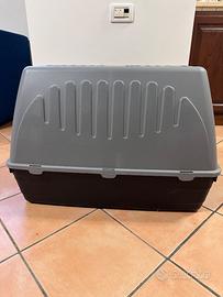 Trasportino per cani di taglia media mis: cm L 74 x P 41 x H 51. Base con doppio fondo per la pulizia. Usato pochissimo in Perfette condizioni.