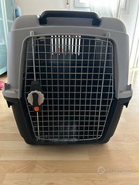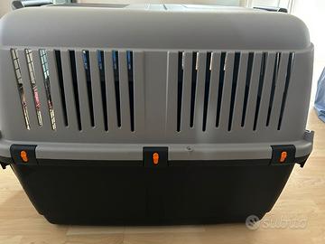 Trasportino per cani di media/grande taglia, in buone condizioni con alcuni segni di usura, uno dei ganci di sicurezza non si aggancia bene ma ancora in ottime condizioni generali.