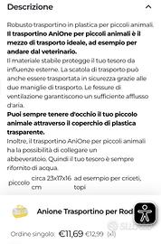 Trasportino Anione per criceti,piccoli roditori e animaletti. Ritiro in Viale di Valle Aurelia.