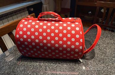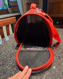 Trasportino per gatti nuovo, comodo con cerniere e tracolla.