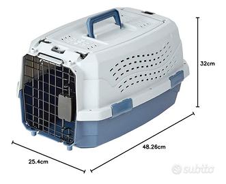 Trasportino acquistato su Amazon ed utilizzato UNA sola volta. L’abbiamo utilizzato per portare a casa il nostro gatto. È solido e resistente. La parte superiore è ben salda e strettamente collegata al fondo tramite ganci e viti in metallo. Oltre alla porta anteriore, è possibile aprire anche la parte superiore per aiutare il gatto a vincere le resistenze. La chiusura è robusta e salda. Nella parte superiore ci sono due anelli per agganciare una cinghia e rendere il trasporto più agevole. Consegna a mani a Treviso, zona INAIL-ACI-Tribunale o zona piazza Vittoria (solo la mattina).