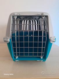 Vendo trasportino per gatti, ancora in perfette condizioni, con tanto di grata e tettuccio apribile. Misure: - Altezza e spessore: 27 cm circa; - Larghezza: 45 cm circa NO SPEDIZIONE!!!!