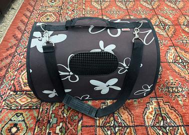 Vendo trasportino color nero di medie dimensioni per gatto o cane con anche una cinghia per usarlo a tracolla. La marca del trasportino è Zolux.